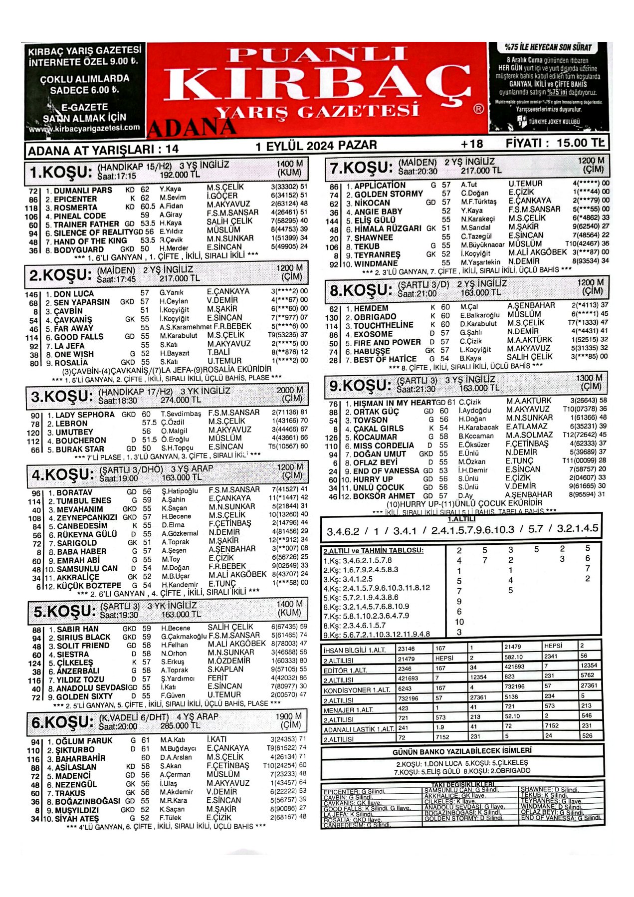 Bülteniniz Kırbaç, 01.09.2024 Tarihli, 458.00 ₺ ikramiye tutarlı Adana 2.Altılısını tahmininde bularak okurlarımıza kazandırdı.