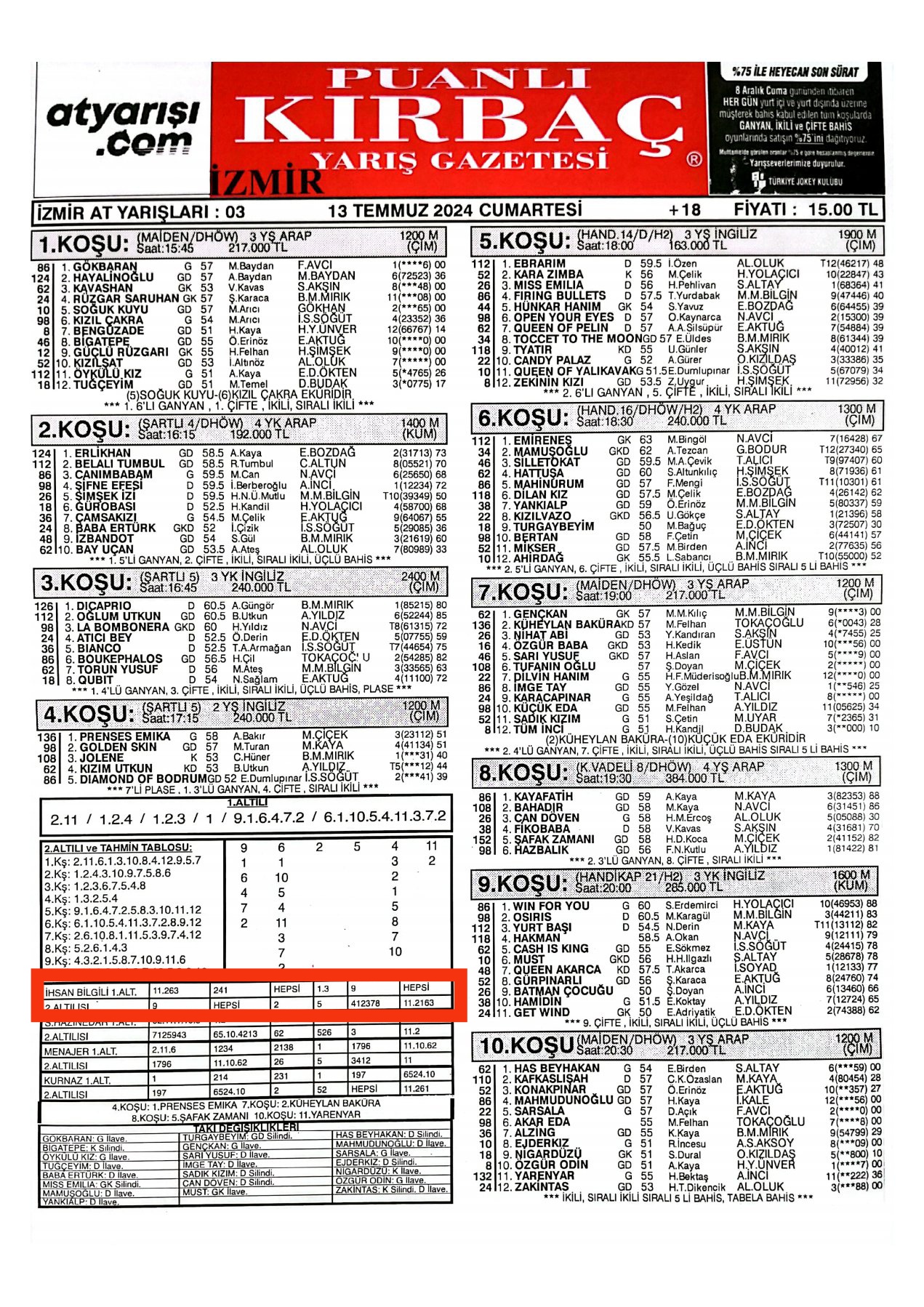 Yazarlarımızdan İhsan BİLGİLİ, 13.07.2024 Tarihli, 18.409 ₺ ikramiye tutarlı İzmir 1.Altılısını tahmininde bularak okurlarımıza kazandırdı.
