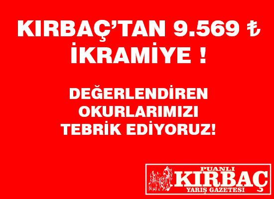 Yazarlarımızdan Yusuf Kaya, 01.01.2025 Tarihli, 9.568 ₺ ikramiye tutarlı, Şanlıurfa altılısını tahmininde bularak okurlarımıza kazandırdı. Sizde kazanmak için KIRBAÇ almadan altılı oynamayın !  ...